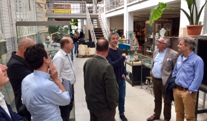 IBN organiseerde een bijzonder interessant uitstapje op donderdag 11 mei. Rond de middag werden we met een smakelijke lunch ontvangen in de Philips Fruittuin, waarna Boudewijk Tooren ons alles vertelde over het Brainport Park. Daarna op de fiets naar Strijp R. Mister Piet Hein Eek himself vertelde ons in zijn showroom over zijn werk. Geweldig! Hup weer op de fiets richting het PSV Stadion. Patrick van der Voort wachtte ons daar op om het over de PSV Foundation te hebben. Tijdens de borrel hebben we onze sprekers uiteraard bedankt met een lekkere fles wijn.